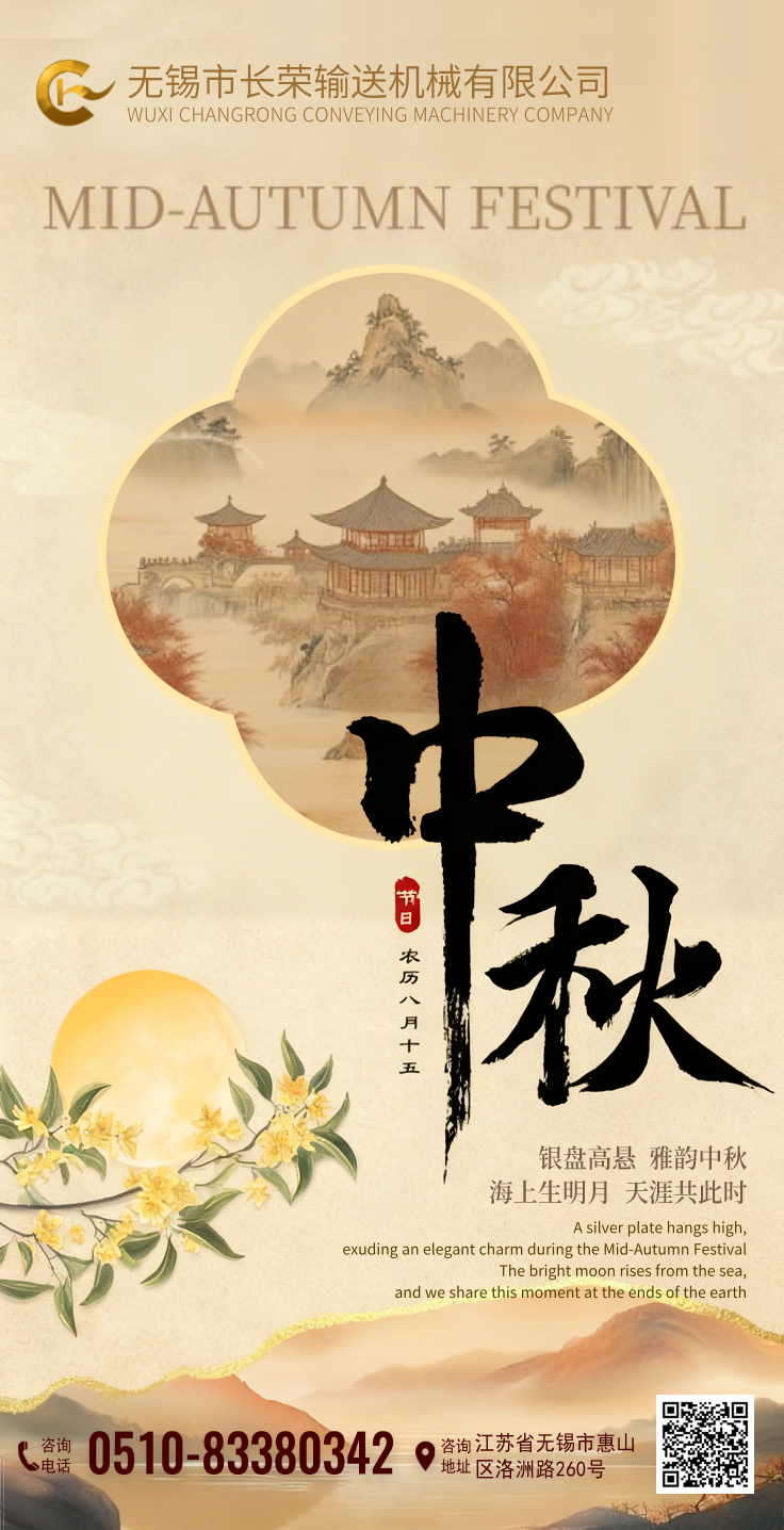 The bright moon reflects the Mid-Autumn Festival. Wuxi Changrong Conveying Machinery wishes you a full moon and a happy family!